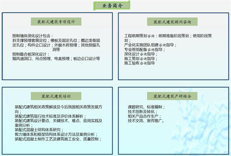 承攬【裝配式建筑】設(shè)計、咨詢、培訓(xùn)、檢測認(rèn)證、產(chǎn)研等業(yè)務(wù)